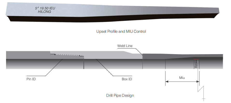 Adopt optimized Miu and Miu-R designs, combined with a special stable upsetting process, which improves the fatigue resistance on upsetting end of the drill pipe.