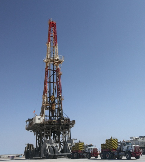 為保證搬家工作安全、高效地進(jìn)行,并爭取實(shí)現(xiàn)縮短搬家時間,海隆油服阿曼有限公司提前一個月開始著手制定搬家計劃和方案、識別搬家風(fēng)險、分析控制措施,并多次和PDO作業(yè)部討論、論證;隨后還到現(xiàn)場對搬家路況進(jìn)行復(fù)核勘測、反復(fù)核算,最終認(rèn)為現(xiàn)場狀況符合設(shè)計要求,決定實(shí)施底座直立、井架直立搬遷。