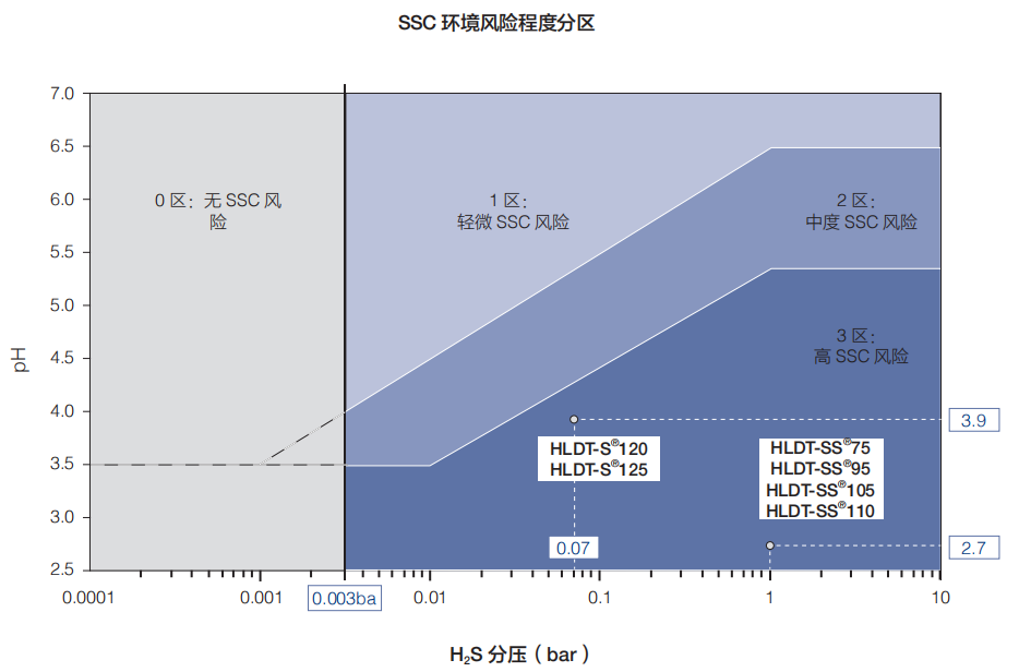 · HLDT-S®120、HLDT-S®125 高強度抗硫鉆桿,同時滿足高強度及抗硫化氫,可用于中度 H2S 腐蝕環境的深井、超深水平井作業。
