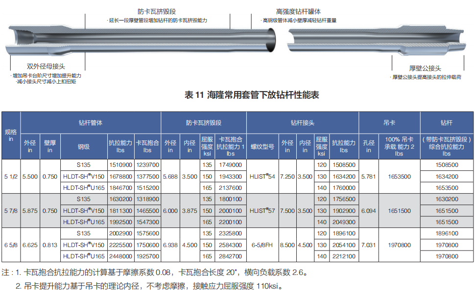 (b)鉆桿鋼級:S135、HLDT-SH®Z140、HLDT-SH®V150、HLDT-SH®U165。